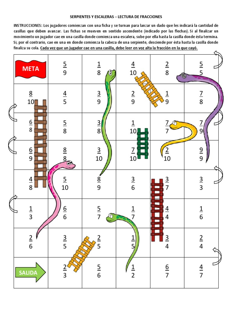 Si terminas en un azulejo de serpientes, descenderás y si caes en la casilla de escaleras ascenderás.